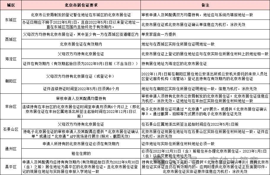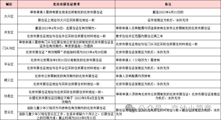 2024年北京各区幼升小的非京籍居住证要求汇总!