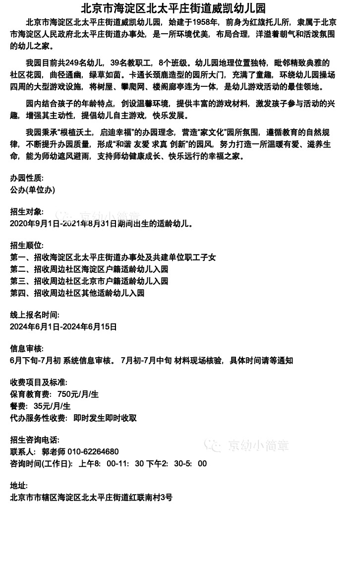 海淀区北太平庄街道威凯幼儿园