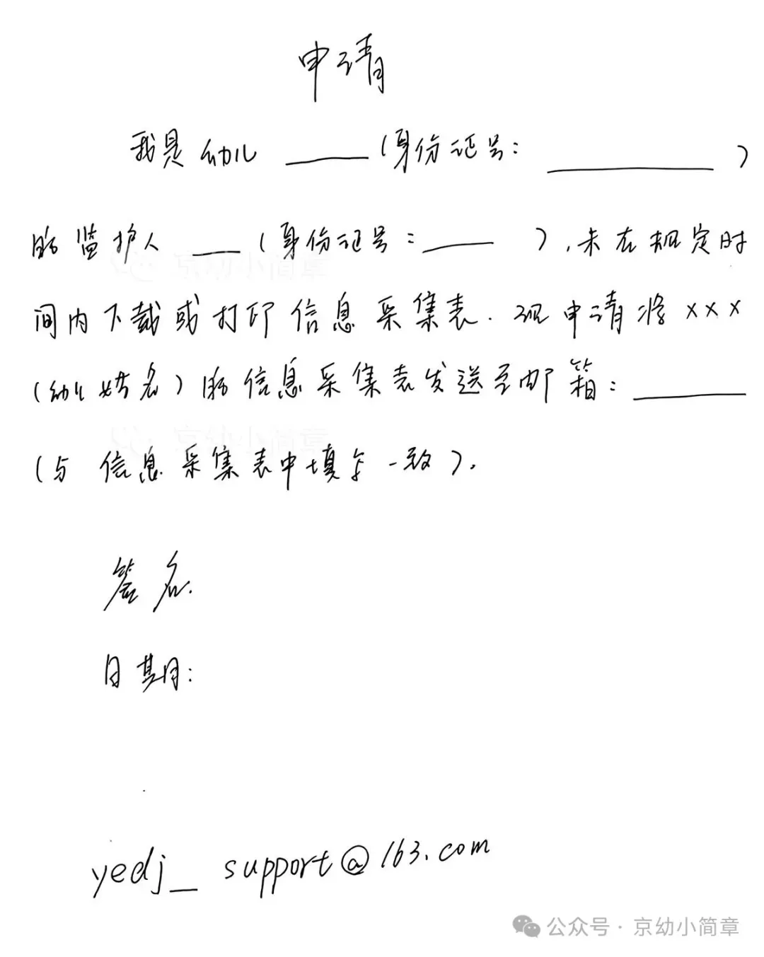 内容:手写下面内容拍照,及孩子身份证或户口本照片、监护人身份证照片。