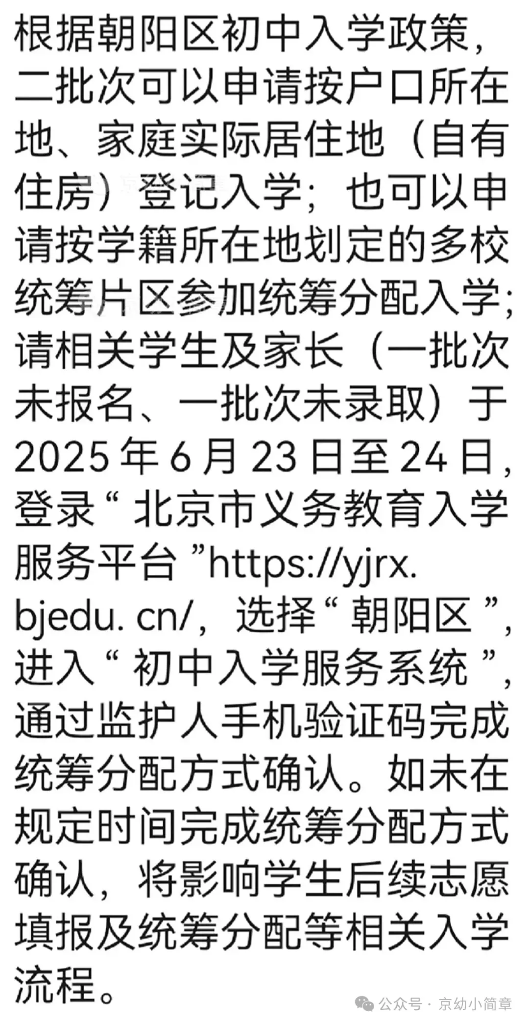 朝阳区小升初二派志愿填报通知!